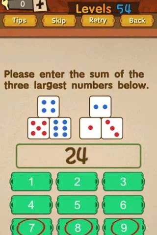 Level 1 4 level 2 16 level 3 24 level 4 24 level 5 35 level 6 180 level 7 8 level 8 click buttons with numbers > they turn green. Using only addition, add eight 8s to get the number 1,000. We have solved all trivia levels for you. Level 9 click odd numbers > they turn green. This is a free math game with hints and answers.